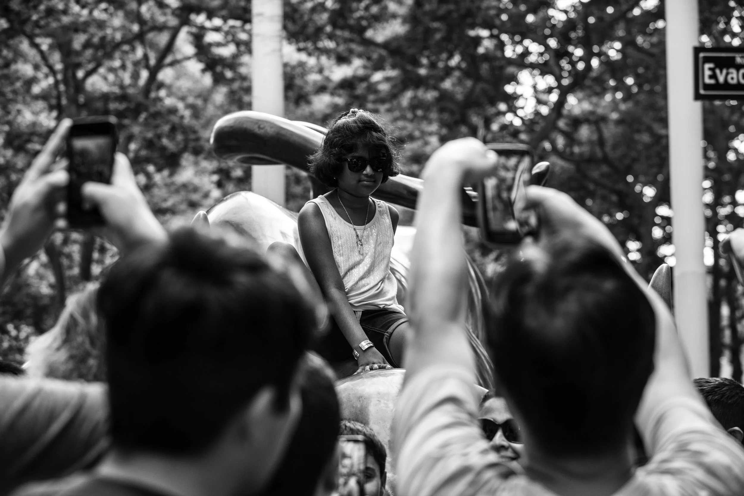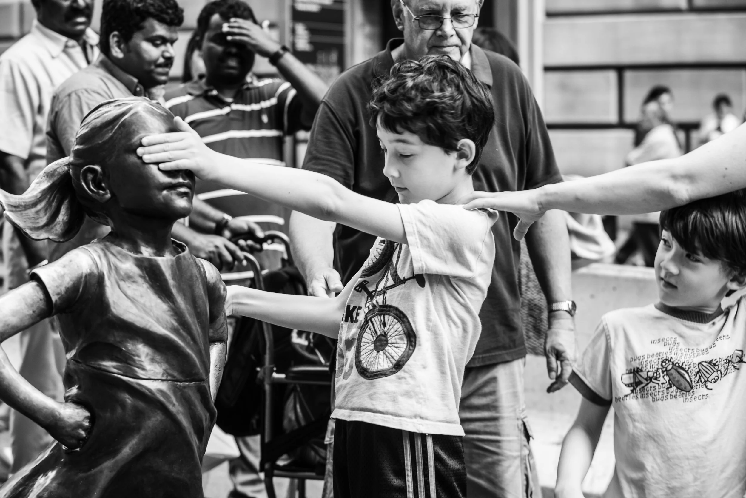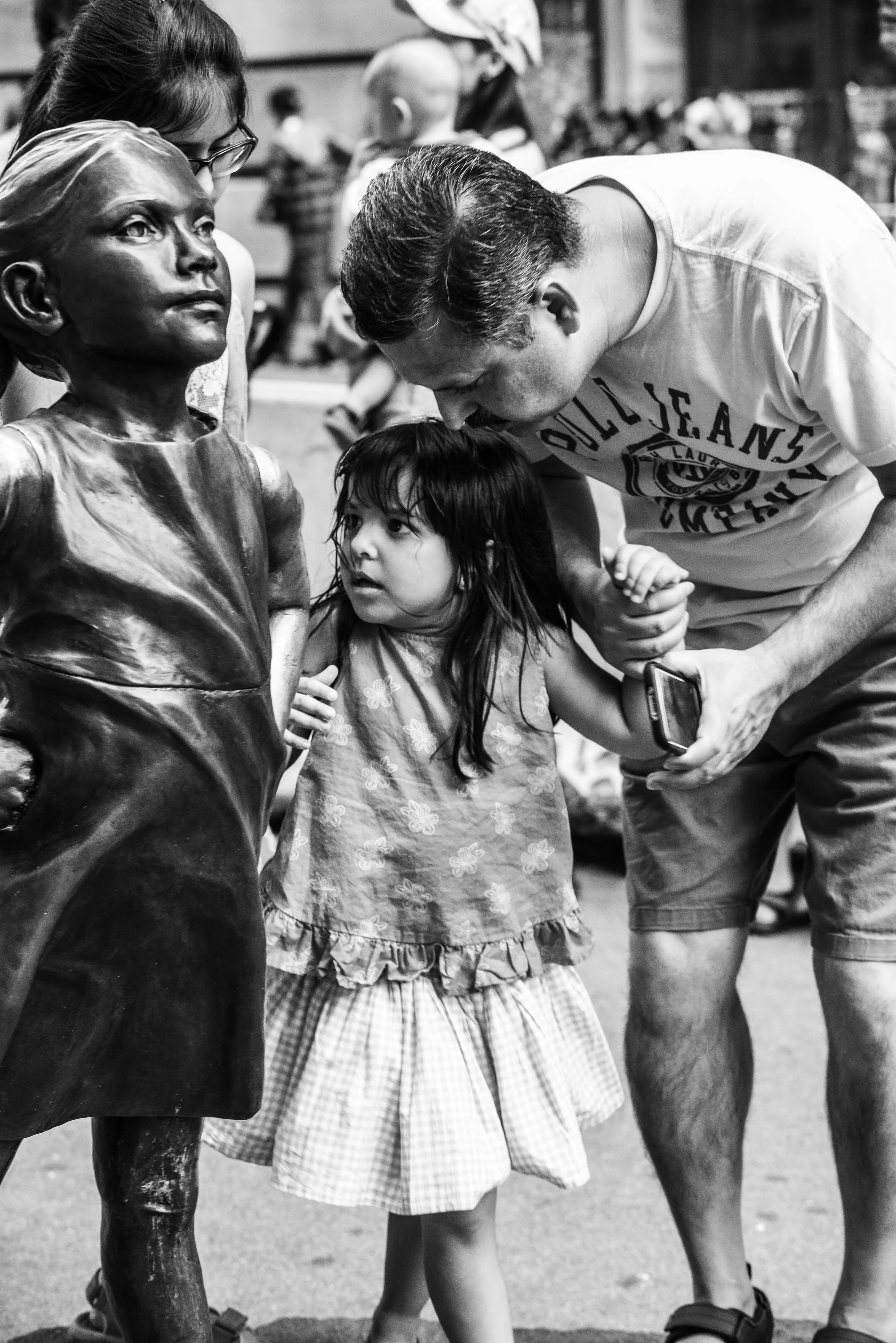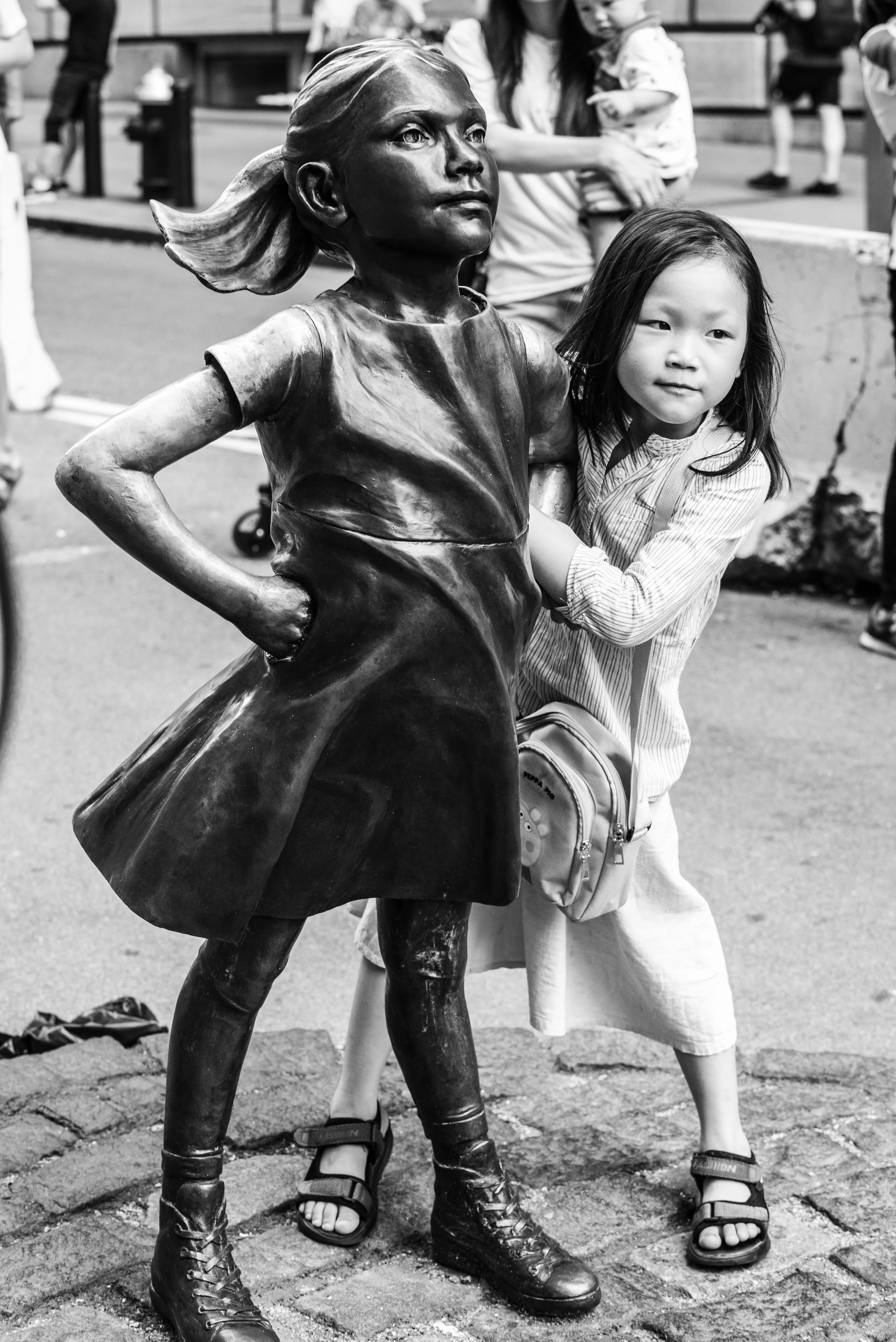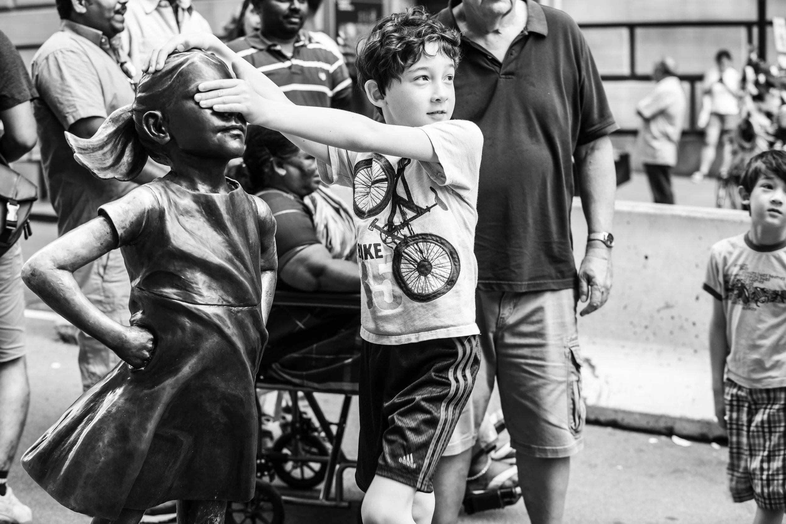 When I finally got to meet the Fearless Girl, I was in awe. After I had my picture taken with her, I couldn't leave. I tried, once, but ended up coming back. My main reason: the reactions of the people who came up to her. I decided to photograph the people who visited her and study their responses. I couldn't believe what I was watching.