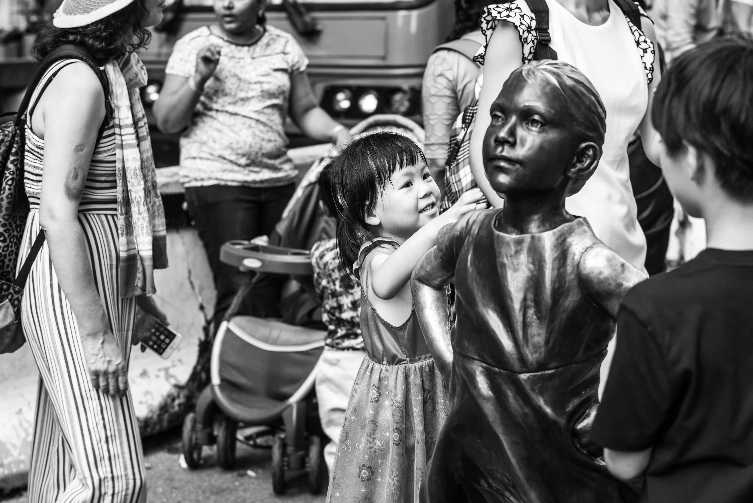 I knew about the Fearless Girl the minute she was installed on March 7, 2017. She came on the coattails of the January 21st Women's March on Washington and struck up such a media frenzy that it was hard to ignore her installation. I loved what she visually represented. I read opinion piece after opinion piece about her arrival. I also read the opinion pieces about why her debut wasn't so welcomed - how she should've been standing next to the Charging Bull rather than in front of him.